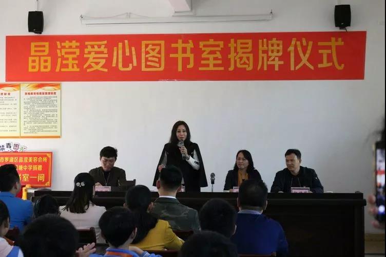 近日,由我会翟美卿会长创立的“香江社会救助基金会”承建的晶滢爱心图书室捐赠及揭牌仪式在韶关市仁化县董塘中学举行。仁化县教育局副局长肖移珍,我会理事、深圳万鸿泰集团董事长刘莲女士,香江社会救助基金会代表,仁化县董塘中学校长郭樟华等领导嘉宾及部分师生代表出席了捐赠仪式。